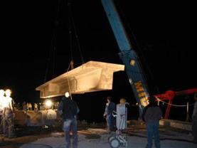 Preparazione per la divisione del ponte ferroviario, tagli solette, fori per passaggio filo, fori per permettere imbragamenti (eseguito di giorno), imbragamento travi con autogru a 2 torri; la demolizione ferroviaria relativa è stata eseguita di notte su suggerimento delle FFSS con una interruzione del passaggio dei treni stimata in 7 ore.